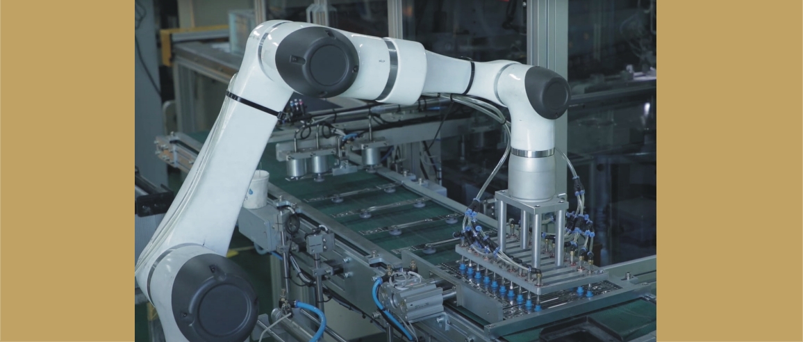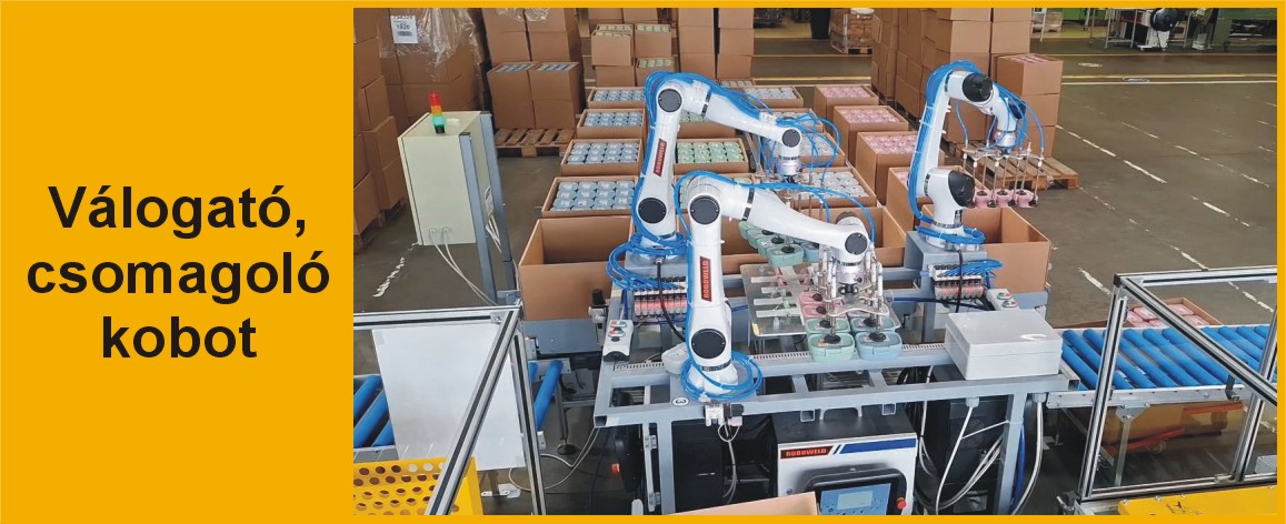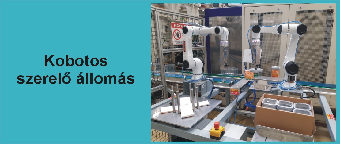 Kollaboratív robot - együttműködő robot - kobot. Az emberrel egy munkatérben képes dolgozni, mert érzékeli az ütközéseket, megáll, megakadályozva a baleseteket..