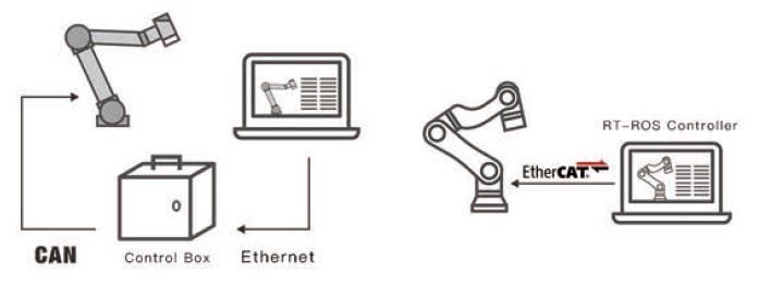 A robotkar közvetlenül a számítógépről kapja a parancsokat, nem szükséges a robot vezérlő "doboz". Valós idejű Linux program adja ki az utasításokat. Az utasítás valós idejű, gyors és pontos. A robotkar akár 10kHz-es frekvenciával is vezérelhető.