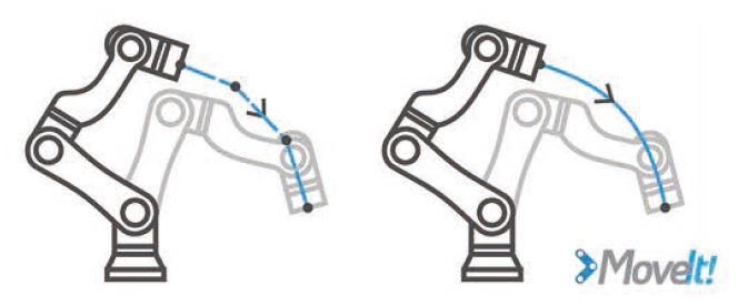 A "Movelt" softver tökéletes mozgást tervez a robotkarnak. A mozgás folyamatos, megállásmentes. A robotkar stabilan, simán és pontosan mozog.