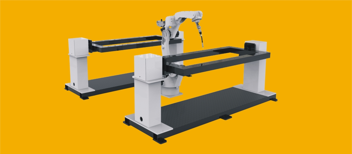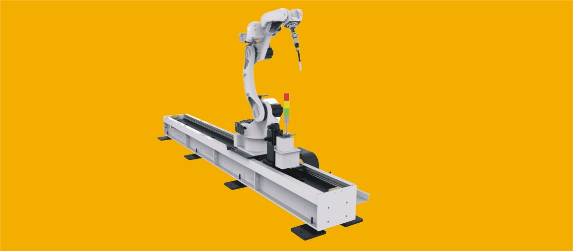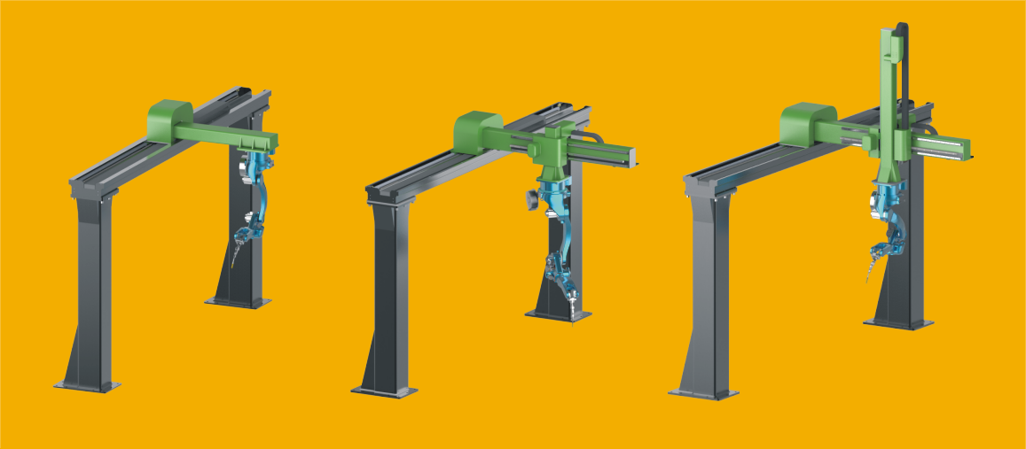 Felső Sínen mozgó robotkar. A robot végighalad a munkadarab mellett, felett.