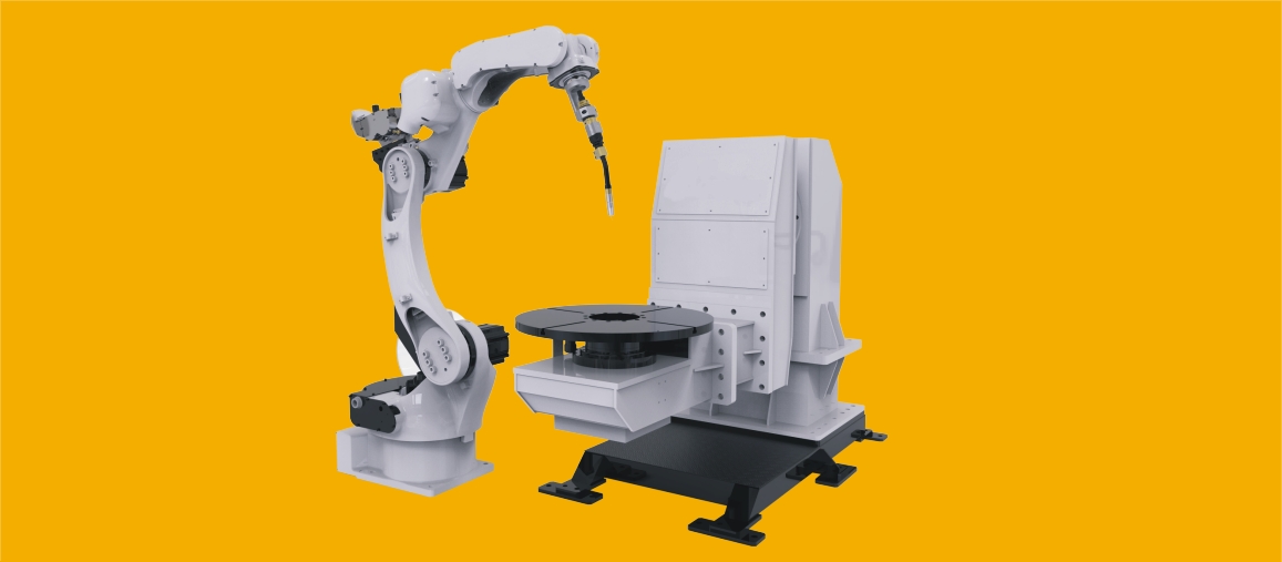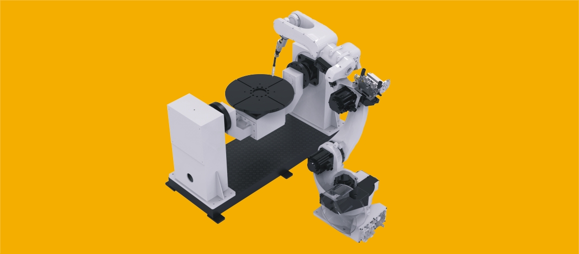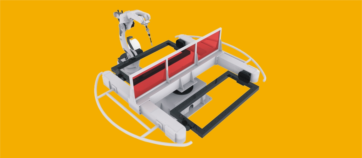 Egytengelyes pozícionáló, átváltható munkahellyel. A munkahely fordul a robothoz.